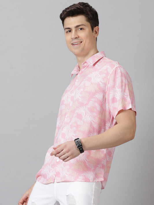 Leafy Pink Half-Sleeve Casual Shirt