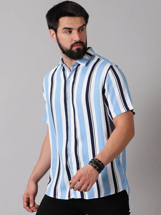Crisp Blue Stripe Half-Sleeve Shirt