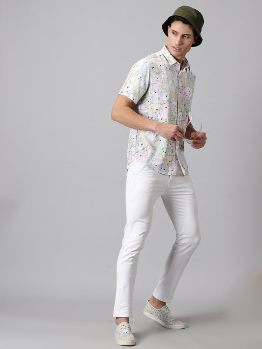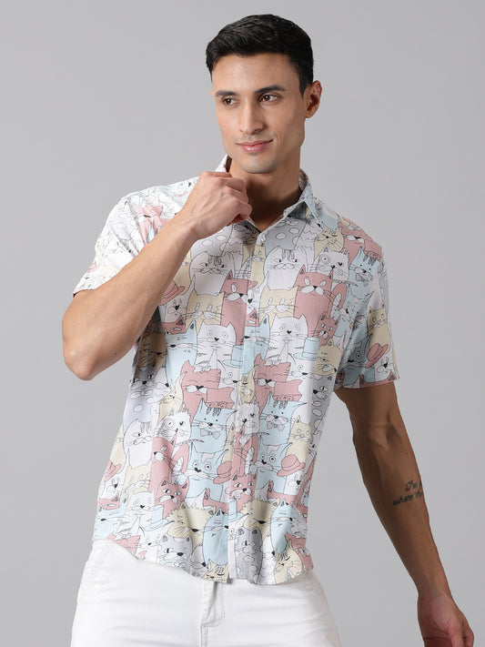 Whimsical Patterned Half-Sleeve Shirt