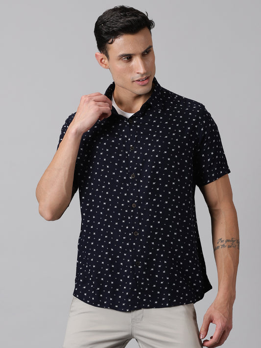 Navy Botanic Half-Sleeve Casual Shirt